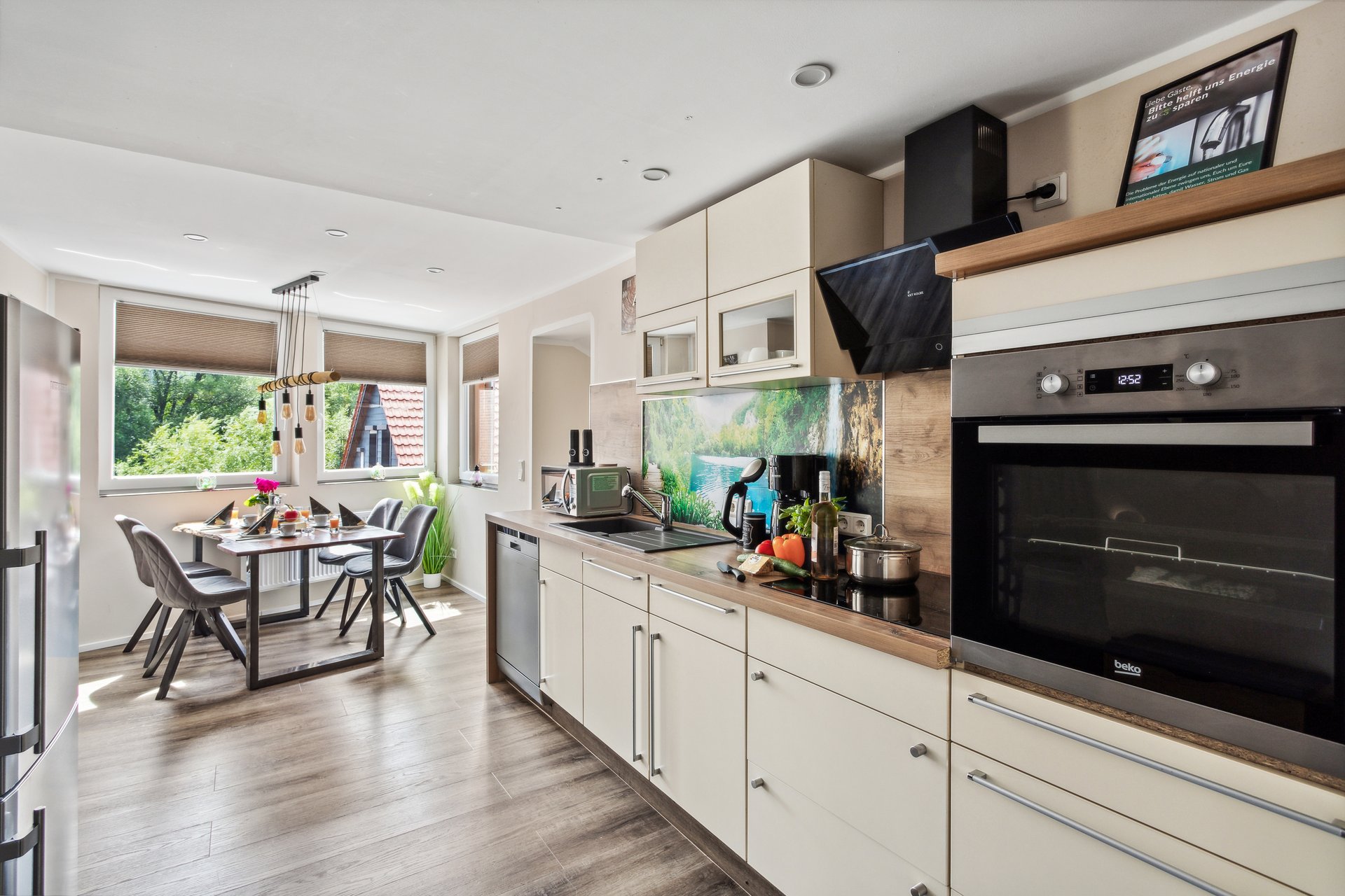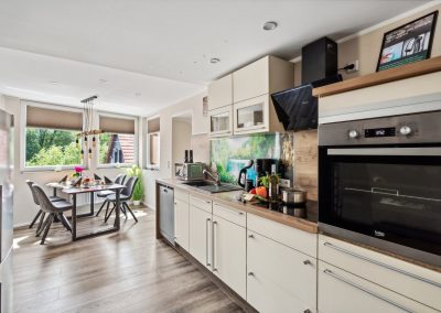 🍳 Top ausgestattete Küche – Alles da, was ihr zum Kochen und Genießen braucht: Cerankochfeld, Backofen, Kaffeemaschine und Geschirrspüler. Und dazu der Blick ins Grüne – was will man mehr?