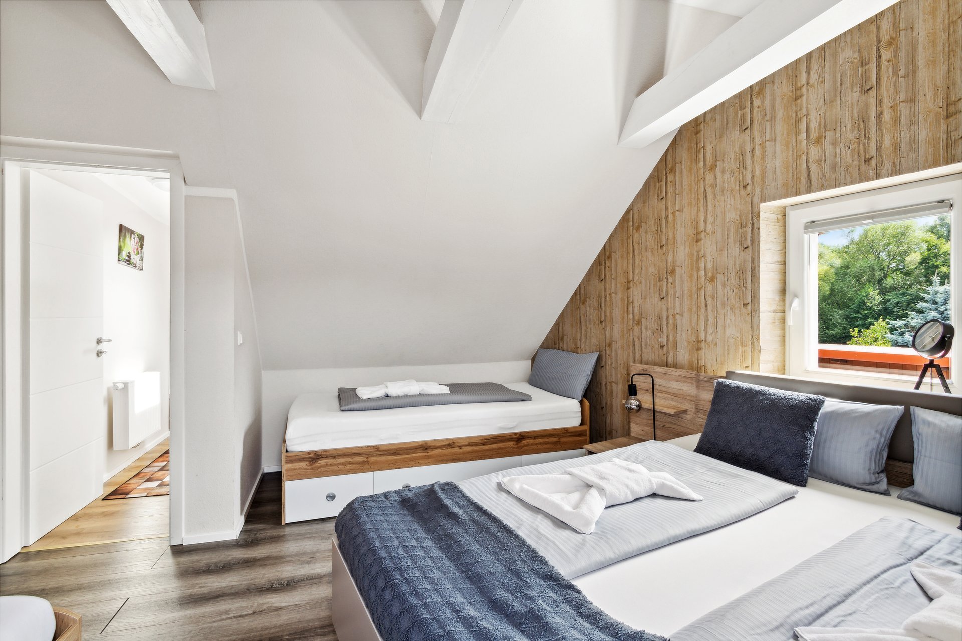 🛏 Schlafzimmer zum Wohlfühlen – Mit viel Holz und gemütlichen Betten, die schon frisch bezogen auf euch warten.
