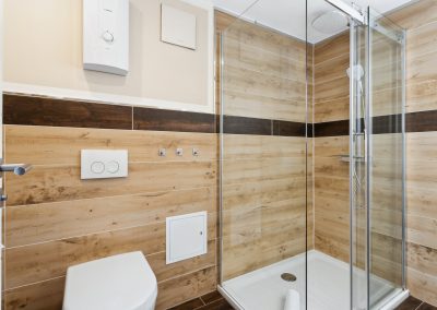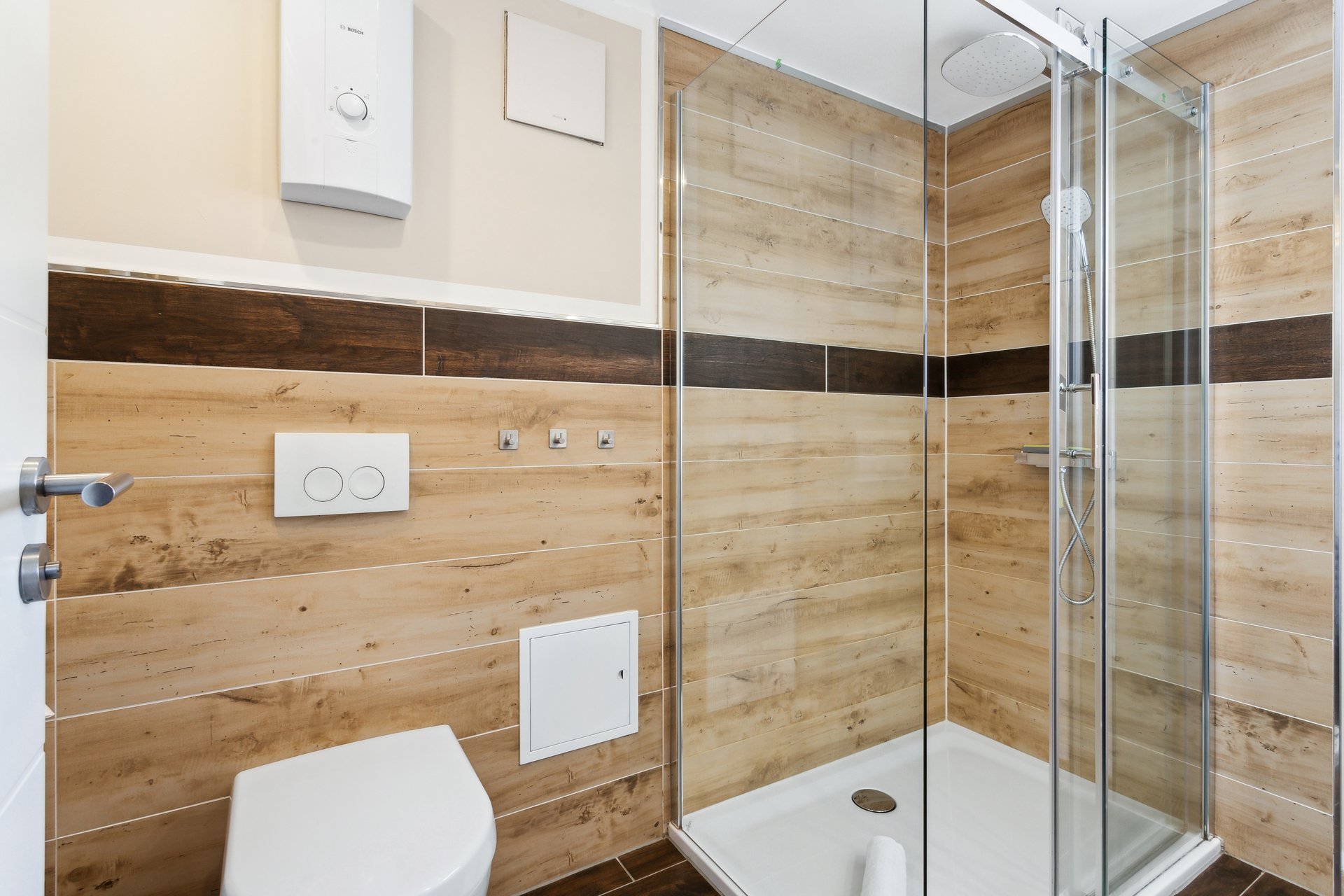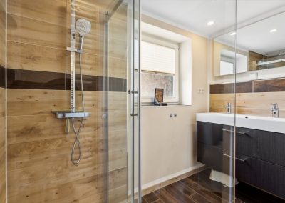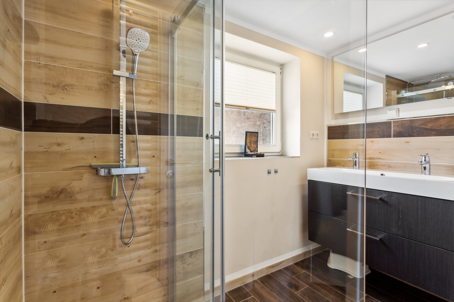 🚿 Stylisches Badezimmer – Große Dusche und Doppelwaschbecken für das kleine Spa-Feeling nach einem Tag draußen.